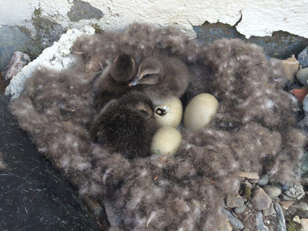 Over time the Eider population at Isfjord Radio has increased, with nests all along the buildings, by the dog yard and even inside the garage. Hatching occurs during first half of July and it is an exciting time when the eggs hatch and the ducklings are being escorted to the water by their mothers and ”aunts” (the other females without any young of their own).