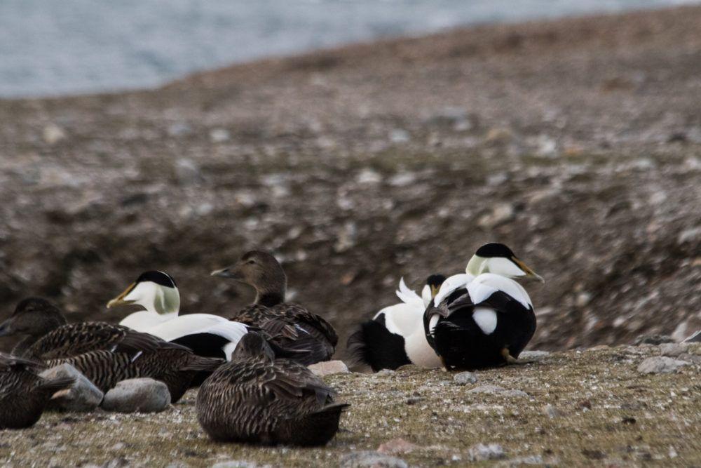 Common Eider, a part of the duck family, is a hardy and robust diving coastal bird. The Norwegian Eider population is made up of approximately 100 000 pairs (2017), but the population varies and in the population on Svalbard there has been a worrying decline. When moulting their flight feathers they are more vulnerable to threats, such as oil spills or human interference. Another critical phase for the Eider is during nesting time when they are easy prey for predators such as minks, foxes, crows and seagulls.